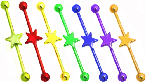 40mm Industrial Piercing Stecker Neon Color mit Stern u Balls