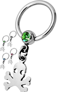 Material: Piercing Ring aus Titan-Hochglanzpoliert oder Chirurgenstahl und Glitzerstein Kugel und Totenkopf Anhänger aus Chirurgenstahl Hochglanz.