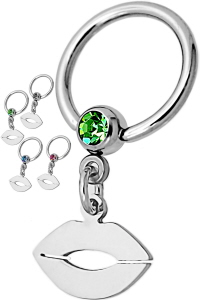 Material: Piercing Ring aus Titan-Hochglanzpoliert oder Chirurgenstahl und Glitzerstein Kugel und Lippen Anhänger aus Chirurgenstahl Hochglanz.
