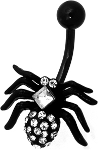 Schwarzer Bauchnabelpiercing mit Spinne und Kristallen