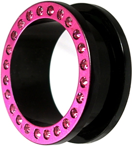Material: Gewinde Flesh Tunnel aus Schwarzen Kunststoff mit Rosa Kristallen