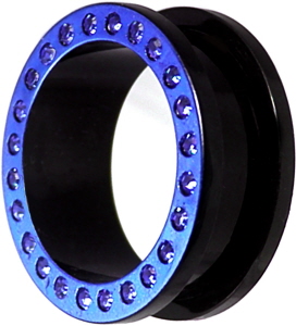 Material: Gewinde Flesh Tunnel aus Schwarzen Kunststoff mit Blauen Kristallen