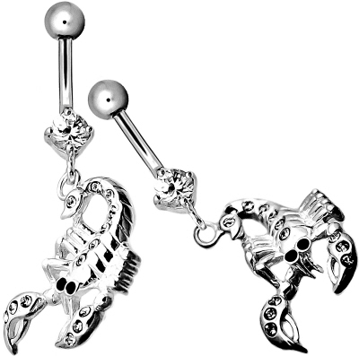 Material: Piercing Banana Stecker aus Chirurgenstahl hochglanzpoliert und Skorpion Aufsatz + Anhänger aus 925 echt Silber (Sterling Silver) mit Multi-Schliff Steinen