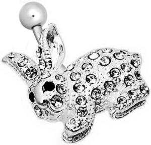 Material: Piercing Banana Stecker aus Chirurgenstahl hochglanzpoliert und Hasen Aufsatz + Anhänger aus 925 echt Silber (Sterling Silver) mit Multi-Schliff Steinen und Perle
