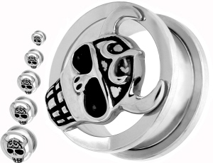 Flesh Tunnel Farbe: Chirurgenstahl Super Hochglanz mit Hochglanz-Schwarzen Totenkopf (Siehe Bild)