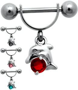 Helix Tragus Piercing mit Delfin Anhänger und Kristallen