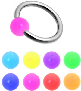 Material: Piercing BCR Klemmring aus Titan oder 316L Chirurgenstahl Hochglanz und UV Klemmkugeln aus Bio Kunststoff