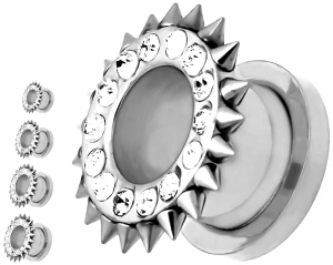 Ohr Piercing Gewinde Flesh Tunnel mit Multi-Schliff Kristallen und Kegel