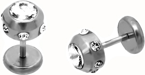 Material: Fake Plug Stecker aus Titan oder Chirurgenstahl Hochglanz und Schraub-Disk aus Chirurgenstahl mit Multi-Schliff Kristallen