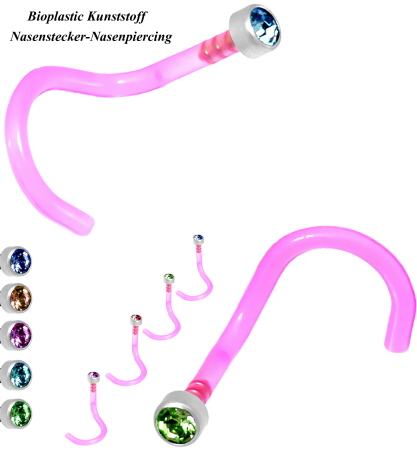 Material: Nasenstecker aus Bioplastik Kunststoff und Nasenpiercing Kugel aus Chirurgenstahl mit Multi-Schliff Kristall