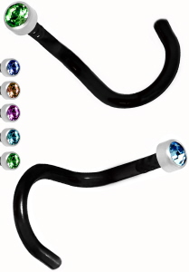 Schwarzer Bioplastik Kunststoff Nasenstecker mit Kristall